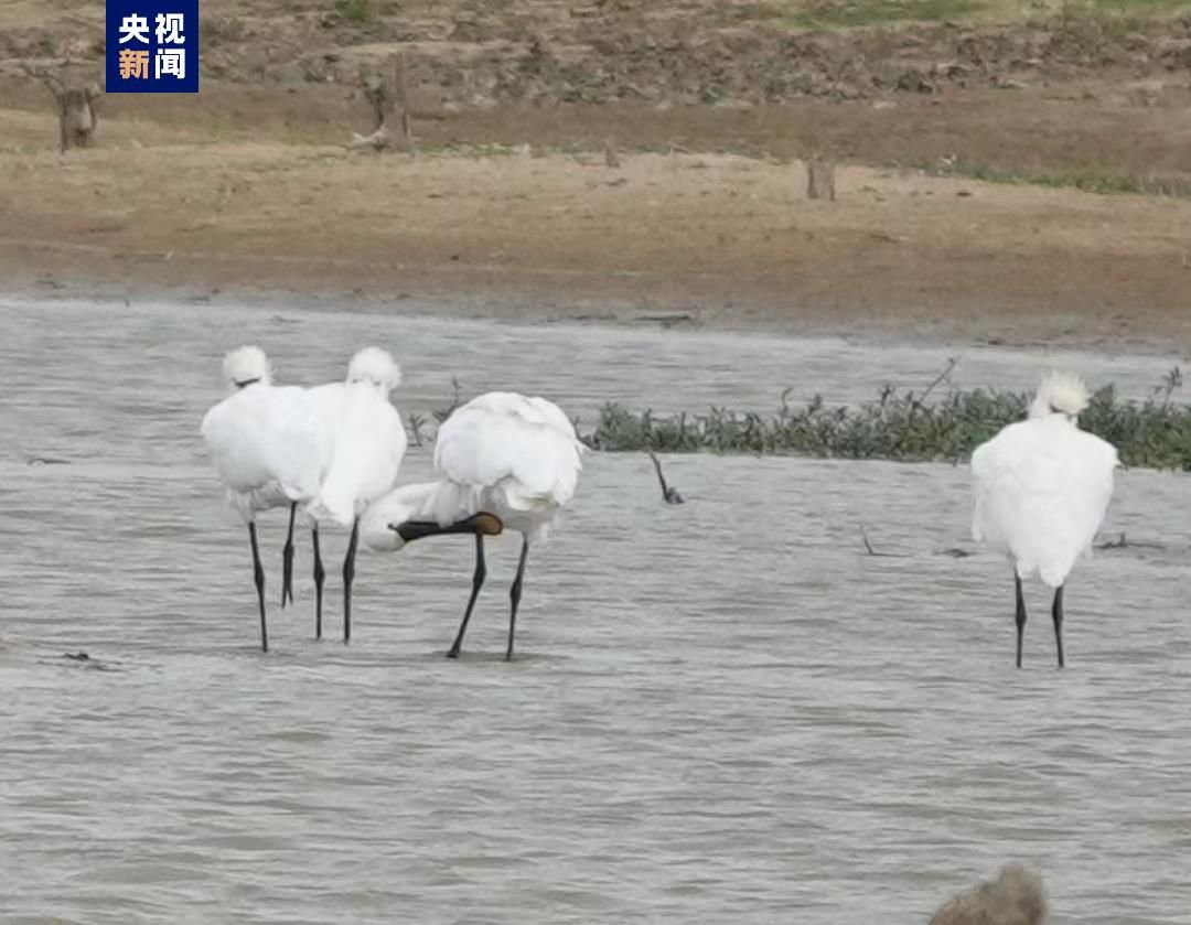 9月21日上午,江西鄱阳湖国家级自然保护区管理局在开展鸻鹬类过境水鸟调查中,在九江都昌马影湖水域监测到9只越冬候鸟白琵鹭。这是江西鄱阳湖国家级自然保护区管理局今秋以来在鄱阳湖范围内监测到的首批越冬候鸟,标志着鄱阳湖即将开始进入候鸟越冬季节。