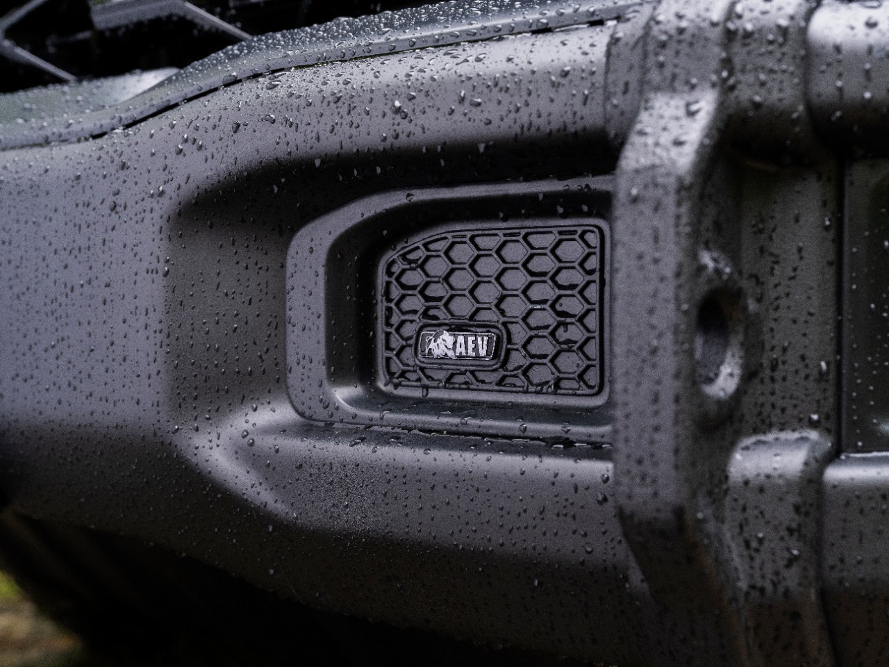 与索罗德ZR2相比,车辆接近角增加至32.5度、离去角提高至23.4度,离地间隙11.2英寸。同时,车辆换装了全新的前后保险杠以及3毫米厚的护板,强度增加了3.5倍。