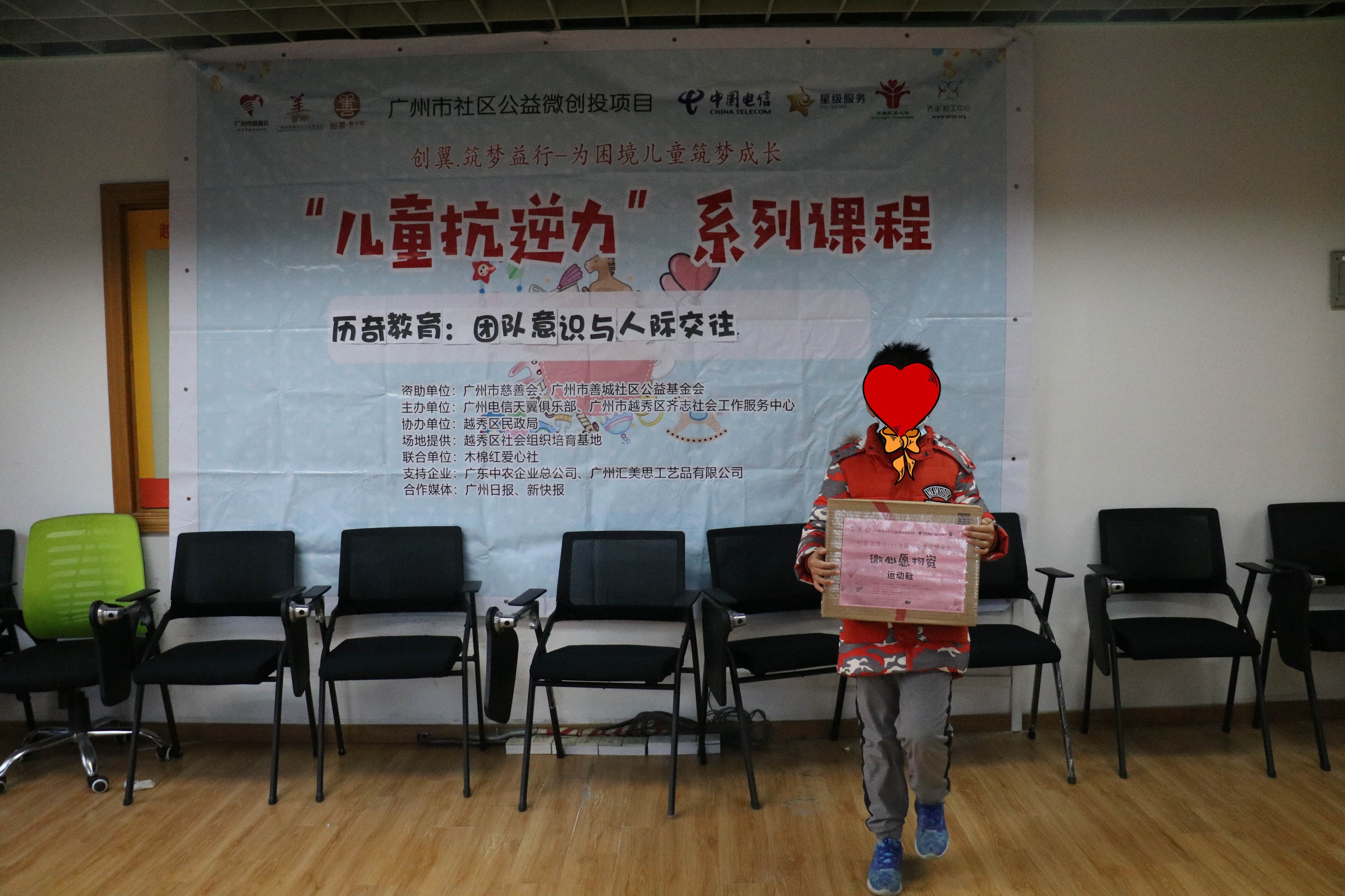 12月19日周六下午,由广州市慈善会、广州市善城社区公益基金会资助,越秀区民政局协办,广州电信天翼俱乐部与广州市越秀区齐志社会工作服务中心联合主办的“为困境儿童筑梦成长”儿童抗逆力课程之历奇游戏体验课在越秀区较场西路东关汛3号五楼活动室继续开展。本次系列课程获得“创善·微创投”广州市社区公益微创投项目资助,得到广东中农企业总公司、广州汇美思工艺品有限公司、木棉红爱心社的支持,本次课程由历奇教育资深导师、广州市越秀区星火社会服务发展中心主任、理事长王志强老师担任课程导师。本期课程有13名孩子和12名家长以及2名家长主动报名成为课程志愿者。