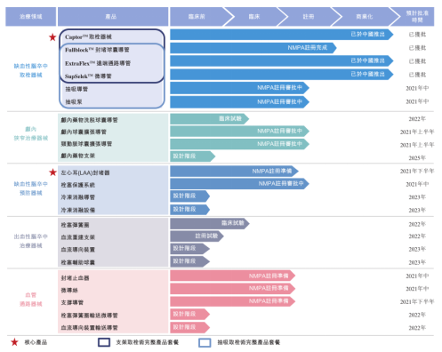 产品商业化进展上,截至最后实际可行日期,心玮已就四种缺血性脑卒中治疗器械获得NMPA批文,形成支架取栓术的完整产品套装,预期于2021年商业化9款目前于后期阶段的在研产品,并于2022-2025年间商业化10款目前于早期阶段在研产品,包括全球首个用于颅内狭窄的雷帕霉素颅内药物洗脱球囊导管。