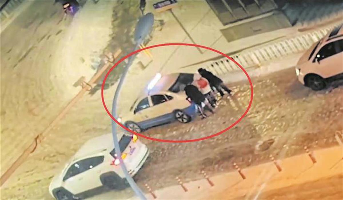 三位少年推车情景(视频截图) A screenshotfrom thevideo showing the three teenagers pushing a car