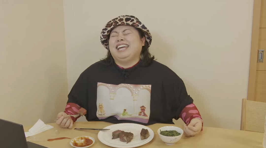 在直播镜头前她大嚼牛排,开怀大笑,还故作傲娇,取乐观众让他们各种吐槽。