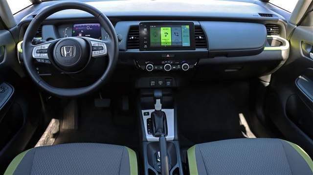 飞度的内饰,采用了更加简洁的设计,中控台功能丰富,将杯架融入中控台中,并且有空调出风口为水杯加热和制冷,是一个聪明的设计,同时副驾驶位还设计了上下两个扶手箱,别看车小,储物空间可有许多。此外,飞度全系标配的7英寸液晶仪表,功能显示清晰可见。除了跨界版中高配车型配有中控大屏,其余车型只配备了收音机,不过考虑到不到10万元的售价,这样的配置倒也说的过去。