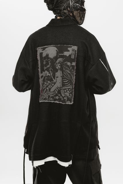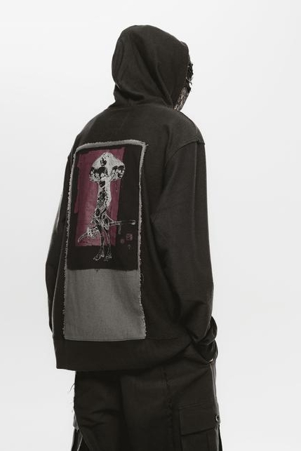 暗黑风格设计加入 T.J.Sayu 怪诞的艺术作品,让整个系列吸睛度极强。而宽松的剪裁又让单品上身效果不羁又帅气。