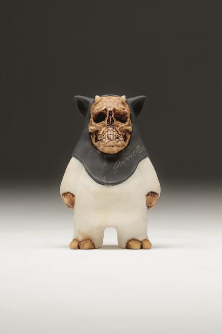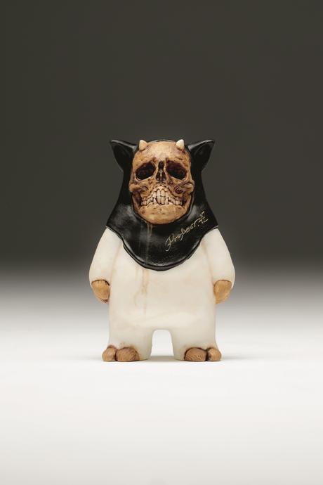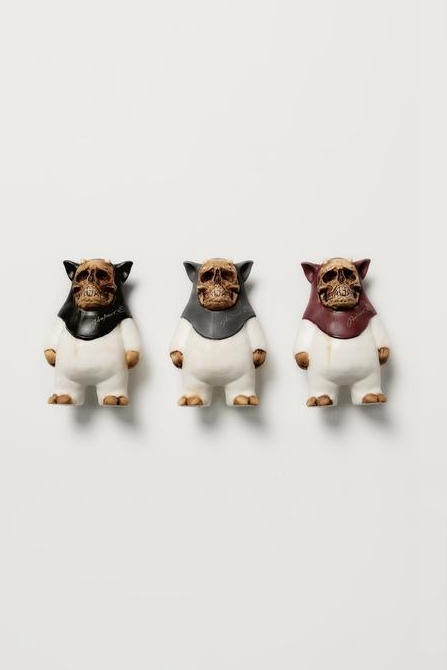 除了服饰以外,双方还以 Tokyo Jesus 知名 Gaki 人偶为原型,打造了特别的黑、灰、红三色 Gaki 手办。