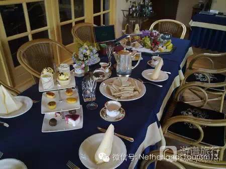 传统英式下午茶:一杯传统Prosecco配迷你乳蛋饼,多种选择的传统香草茶,奶油与果酱巧妙集合的英式烤饼,巧克力塔及马卡龙