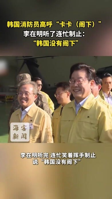 韩国消防员高呼“卡卡”李在明听了连忙制止:“韩国没有卡卡”#李在明笑着说韩国没有卡卡 #李在明被喊卡卡后连忙制止