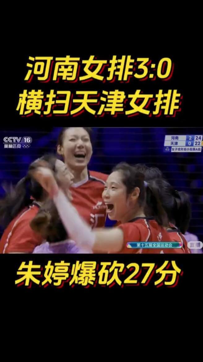 朱婷27分!河南女排3-0横扫天津队,赛点球太热血,全场沸腾