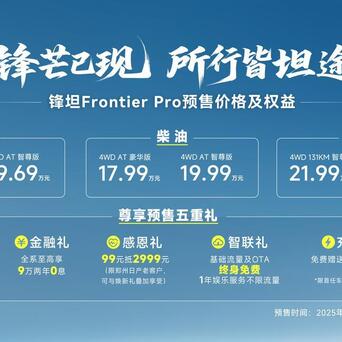 关于这事儿,我觉得郑州日产新作锋坦Frontier Pro挺不错,同时这款新车最近开启预售,锋坦Frontier Pro预售价格17.69万-19.99万元,锋坦Frontier Pro PHEV预售价格21.99万-24.99万元。