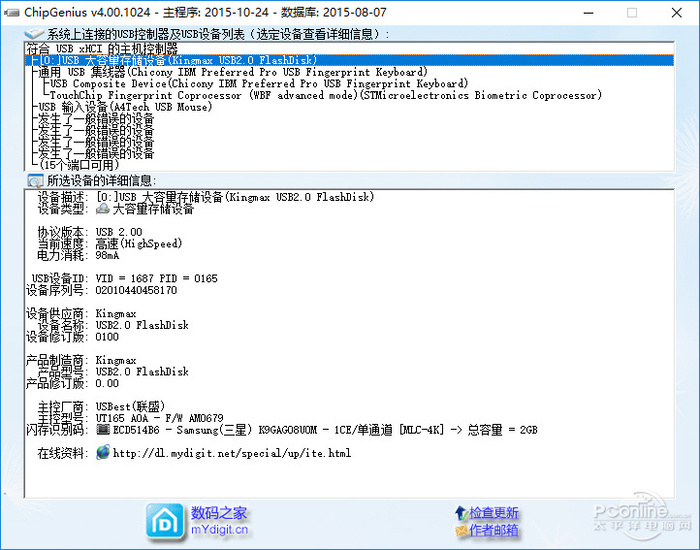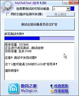 目前网络上流行着不少U盘鉴定工具,例如ChipEasy、ChipGenius等,这些工具能够查看U盘的芯片方案和闪存识别码,如果你有经验的话,就能够通过这些信息识别出假U盘的破绽。而利用MyDiskTest这款工具,还能够进行简单的扩容测试和数据校验,如果U盘有改过容量或者使用劣质闪存,那么就会真相大白。