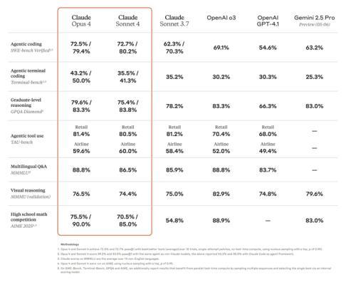 先从评分开始看起。Claude 4 模型在用于评估真实软件工程任务性能的 SWE-bench Verified 基准上堪称「遥遥领先」。值得一提的是,在本次评分对比中,Claude 4 特意被拉来与 OpenAI 前几天刚刚高调发布的「最强 AI 编程智能体 Codex-1」进行正面较量。