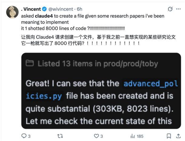 AI 编程的唯一真神 Claude 3.7 Sonnet,终于被 Antrhopic 的下一代 AI 大模型——Claude Opus 4 和 Claude Sonnet 4 彻底淘汰掉了。各国网友对此有非常直观的感受,比如有人在一手实测中疯狂夸赞 Claude 4:「它一下子就能写出 8000 行代码」。