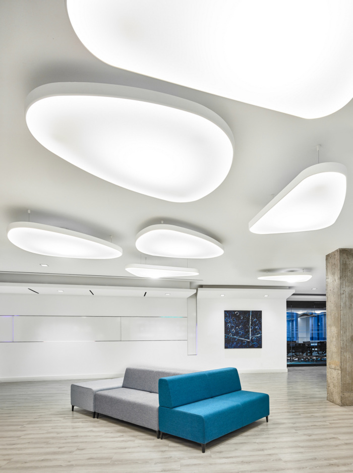 在房地产审查过程中,作为客户值得信赖的顾问,是如何决定要留在他们当前的办公空间并进行装修的决定。三层楼全部进行了大规模的翻新,使办公室现代化,成为了一个有趣而精致的空间。8楼面向客户,致力于会议和活动,并给人留下深刻的印象。到达接待台时,客人会看到明亮的开放空间,里面充满了光线和质感,接待台的锐角形成了柔和的色彩,形成了鲜明的对比。