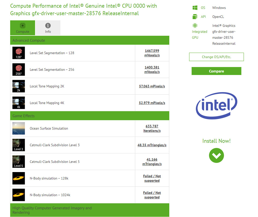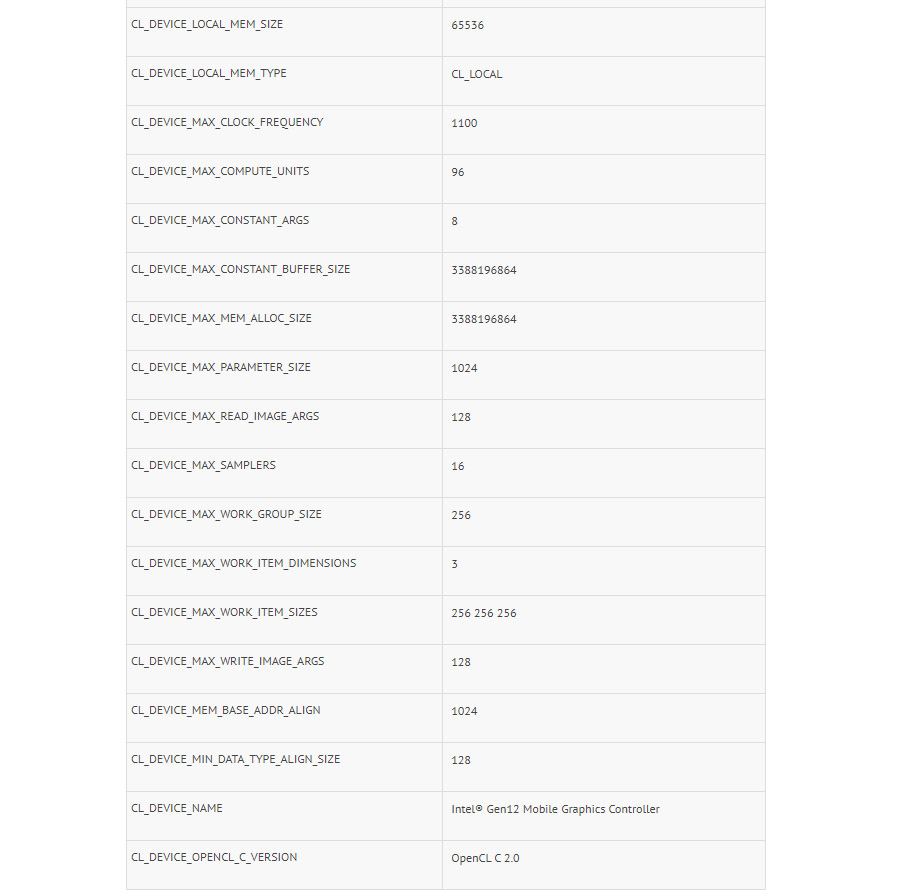 目前Intel Gen 12核显已经出现在CompuBench的数据库里面,它拥有多达96个EU,而现在Intel最强的核显Iris Pro P580也只有72个,而最为常见的UHD 630核显则只有24个EU,可见新核显规格之强劲,而他的最高频率为1.1GHz,而Iris Pro P580的足最大频率也是这样,即使不谈架构改进,光从规格上来看性能也可以提升33%,如果考虑上工艺架构的变化的话,性能有可能提升40%以上。