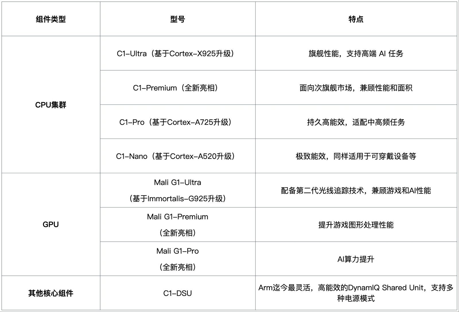 至于全新 Arm Lumex 的核心组件,可参考如下表格: