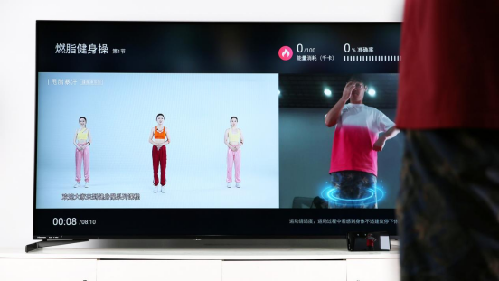 许多朋友都安装有健身APP,为适应大家的运动习惯,海信E8H电视支持“健身镜”功能,能够将手机健身教学传递至电视大屏,通过电视外接摄像头拍摄实时健身画面,帮助大家对比规范动作,让锻炼效果事半功倍。