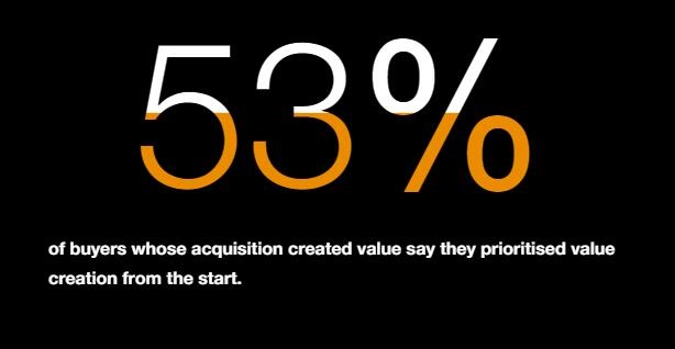 普华永道和Merger market对600位全球高级企业高管进行的研究发现,只有61%的人认为最近一次收购带来了价值。然而,交易开始时就优先考虑价值的收购,在完成后平均24个月的表现优于行业基准14%,而优先考虑创造价值的撤资在同一时期的表现优于同业6%。