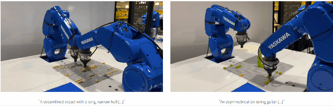 为了证明 AI 搭乐高的设计过程在现实生活中可用,研究人员让机器臂组装了由 AI 创建的 LEGO 模型,结果很完美。