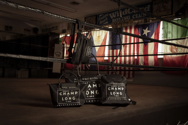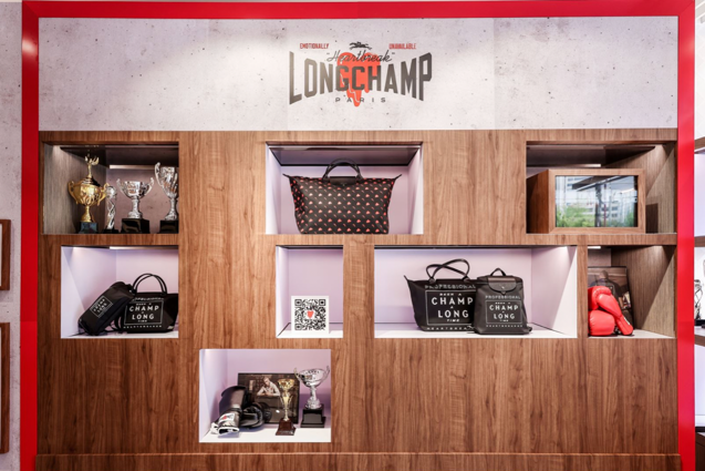 除了趣味燃动的表演和互动游戏,现场还陈列有Longchamp x EU联名系列的全套限量潮流单品。灵感取自Longchamp最为经典的Le Pliage® 饺子包,王者系列尼龙包袋均印有“Been a CHAMP a LONG time”的限定系列标语。这句标语巧妙玩转 Longchamp 的品牌名称,以EU独有的幽默感暗示了设计师的创作灵感,即拳击冠军始终坚守的信念——即使被打倒也要爬起来继续战斗。
