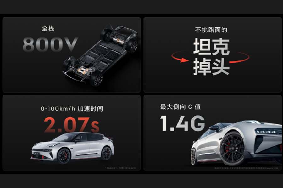 动力方面,新车搭载四电机,并采用前双电机平行布置,综合最大功率310kW,后双电机综合最大功率620kW。此外,新车还配备了四轮扭矩矢量控制,系统最大输出功率达1265Ps。电池方面,新车配备了100kWh麒麟电池,在800V快充的加持下,将电量从10%充至80%时间仅需15分钟,零百加速仅需2.07秒。