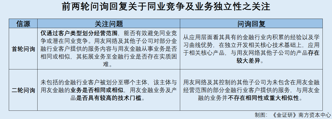 2.1 同业竞争遭“三连问”,称与控股股东用友金融存在产品差异并通过划分客户避免同业竞争