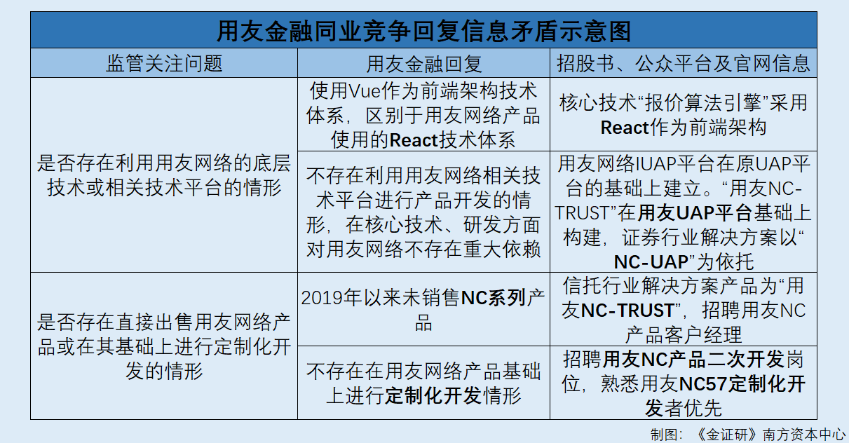 上文提及,监管层还问到用友金融产品开发,是否存在利用用友网络的底层技术或相关技术平台的情形。