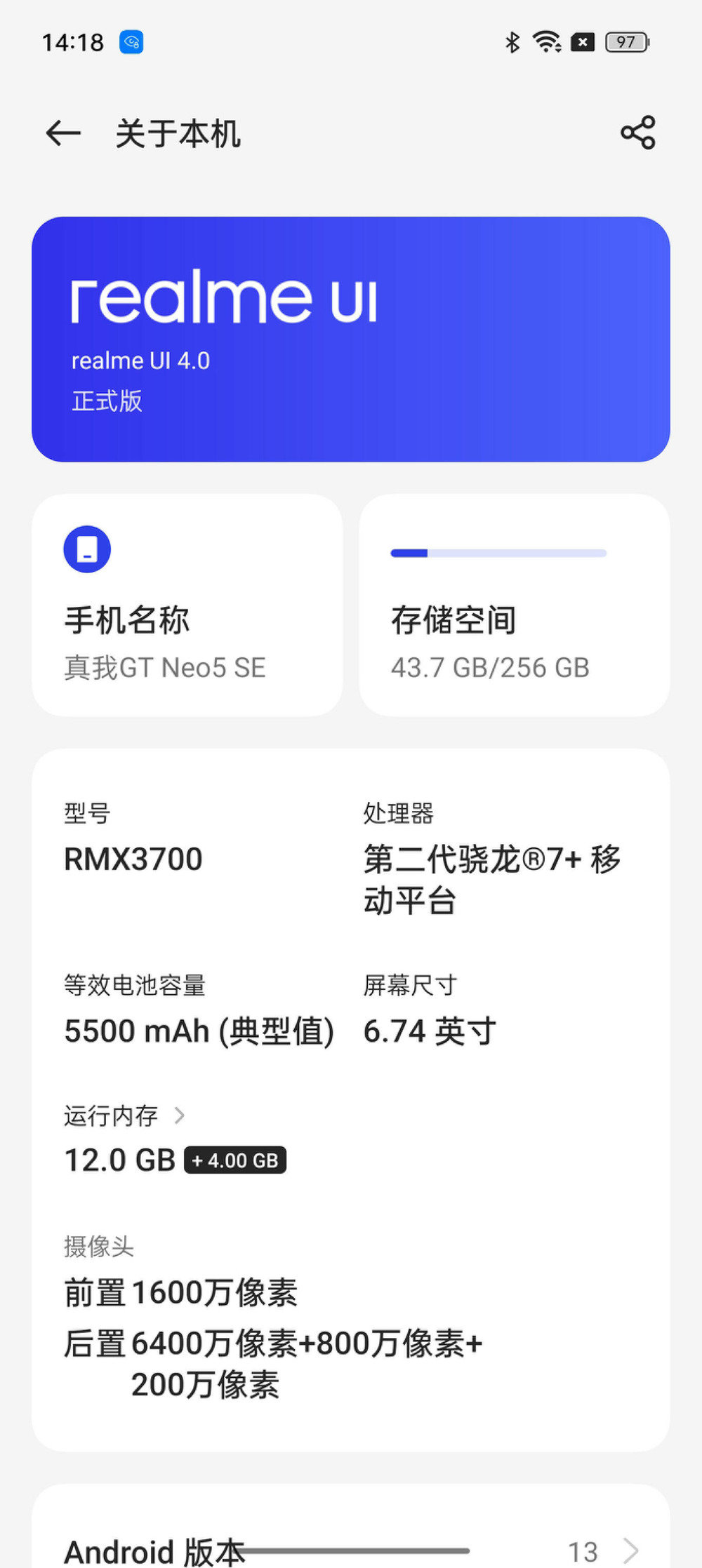 配置方面,真我GT Neo5 SE搭载年度越级旗舰芯第二代骁龙7+,采用8系旗舰芯同款工艺同款架构,带来百万级跑分旗舰性能表现。同时在16GB+1TB满级内存组合与真我旋风内存引擎加持下,再次解锁旗舰性能三神装,可轻松应对高强度的游戏和多任务处理需求,带来更高能的畅爽体验。搭载第二代骁龙7+的真我Neo5 SE带来的旗舰级性能体验与出色的功耗表现。