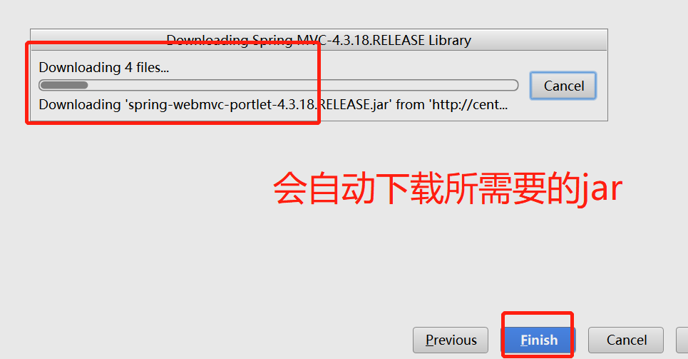 点击finish之后,会自动的下载所需要的jar包的。如下图: