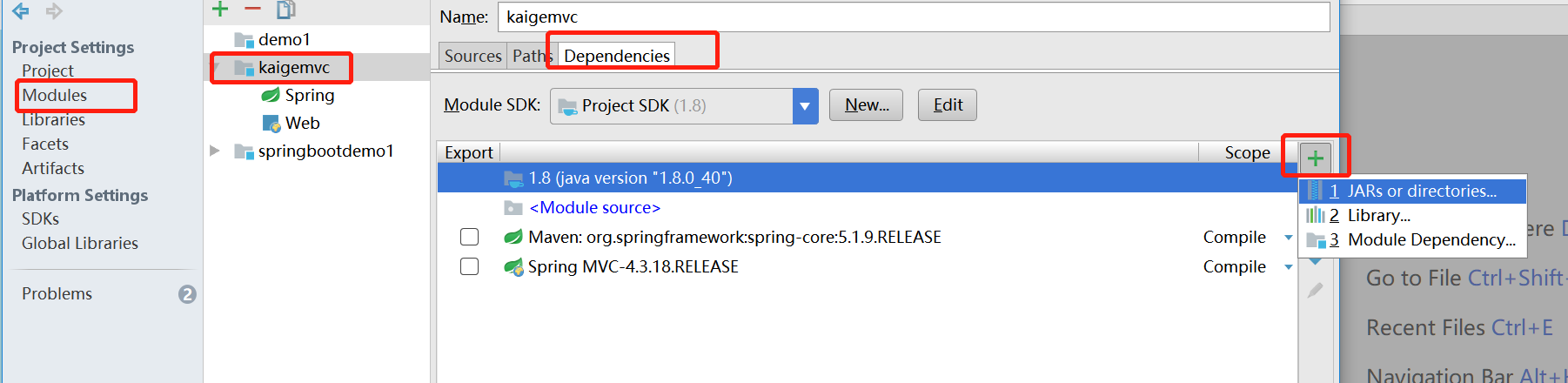 还在刚才位置,选择Dependencies。然后点击右边小加号。如下图: