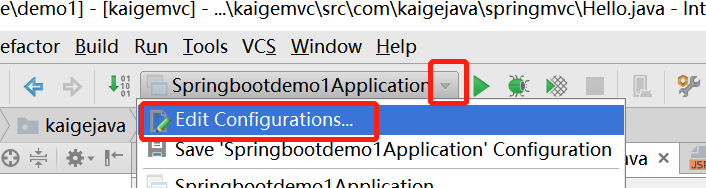 在导航栏,选择如下图的。如果新项目。这里是空的。然后选择Edit Configurations...如下图: