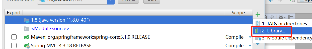 还是刚才的操作。加号之后,选择Library...如下图: