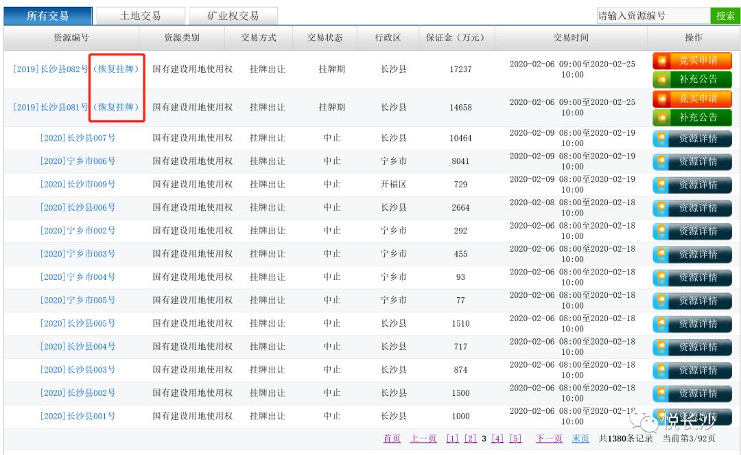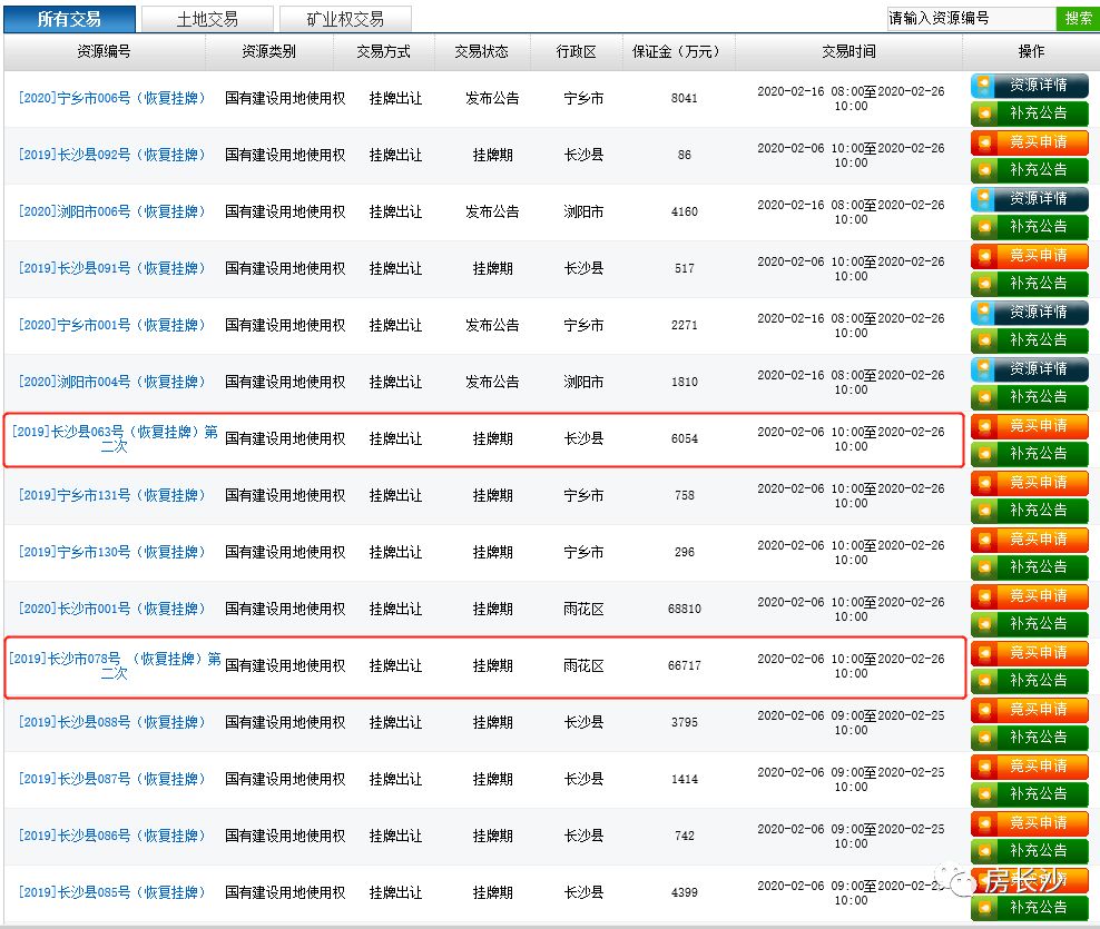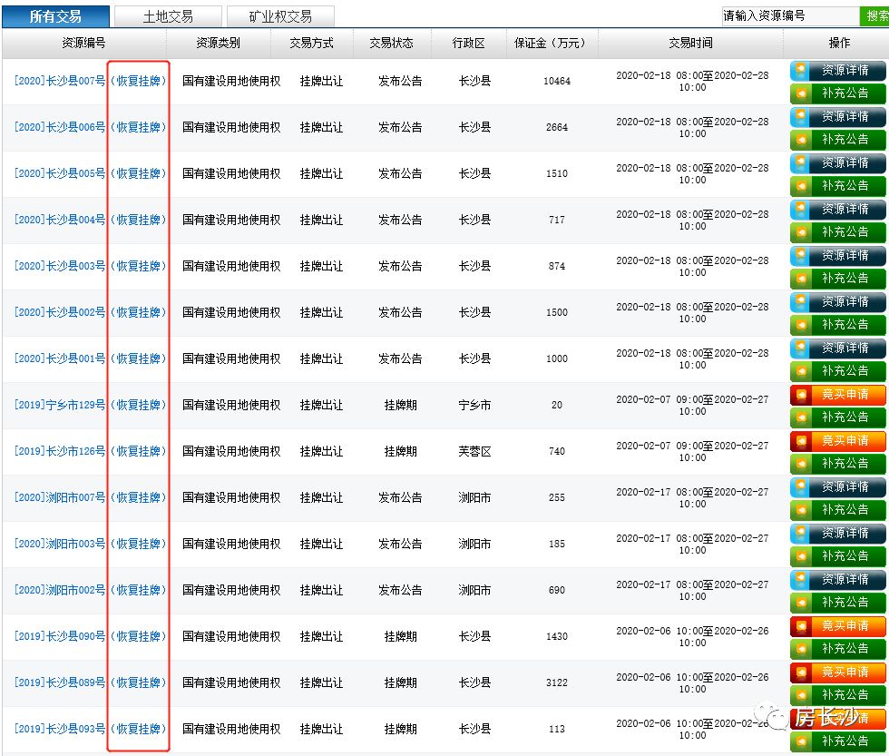 意味着,长沙市已恢复了公共资源交易平台土地出让的网上交易活动。