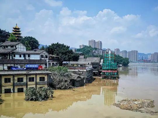磁器口古镇临靠嘉陵江。8月19日,洪水过境重庆主城中心城区,古镇成“孤岛”(图/寰驽斋主)