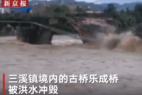 7月6日,安徽宣城乐成桥,在洪水冲击下,这座11孔桥仅剩4孔