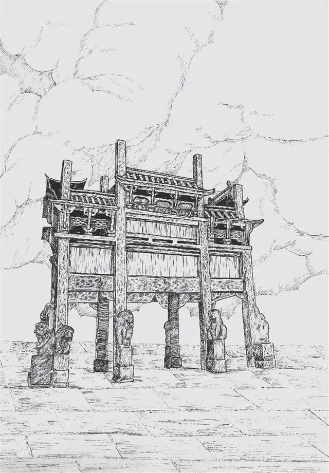 位于黄山市歙县城内阳和门东侧,跨街而立。又名大学士坊,俗称八脚牌楼,建于明万历十二年(1584年)。仿木构造建筑,平面口字形,东、西二面作四柱三楼冲天柱式,南、北二面作二柱三楼冲天柱式,南北长11.54米,东西宽6.77米,全高为11.4米。石坊上遍布雕饰,工致细腻,为徽州石雕工艺中的杰作。