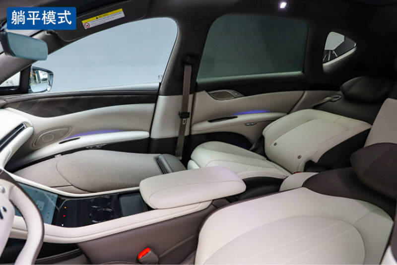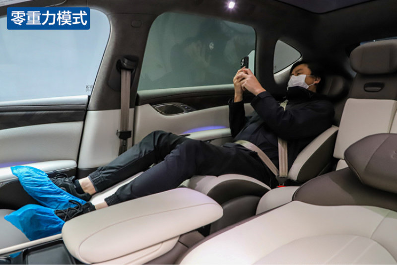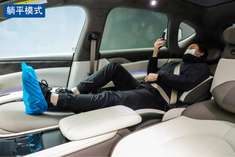 至于躺平模式,座椅则会调整到155度的躺平角度,副驾座椅这时则折叠变成了一个脚凳,对于后排乘客来说,这个模式可能更加适合长途旅行时休憩甚至睡眠。