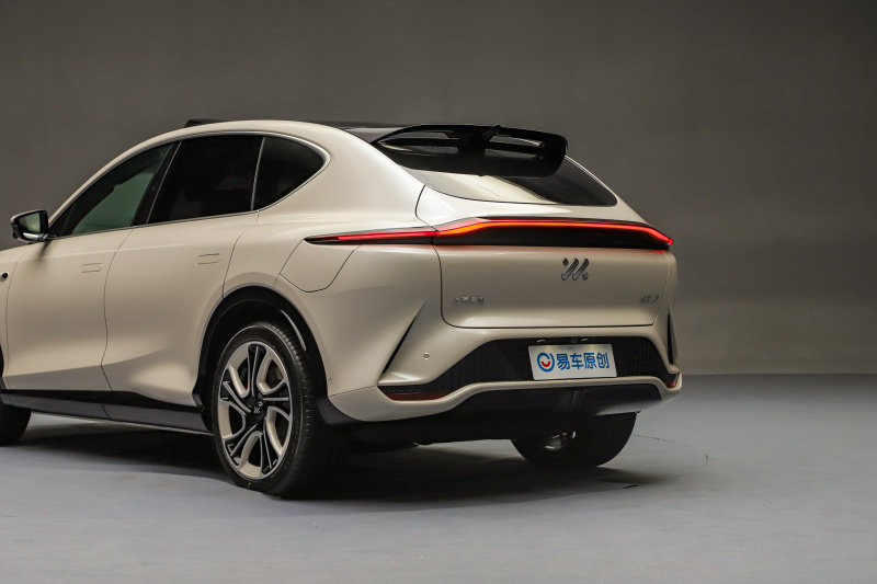 至于车尾的设计,我相信一定会有许多人认为特别像DBX,不过其实这也是智己延续自己家族风格的一种设计思路。贯穿式的LED尾灯能够为车尾提供足够的辨识度,车辆尾部顶端的扰流板采用了镂空式设计,能够对改善气流起到一定的作用,此外在扰流板处还配置了高位刹车灯。