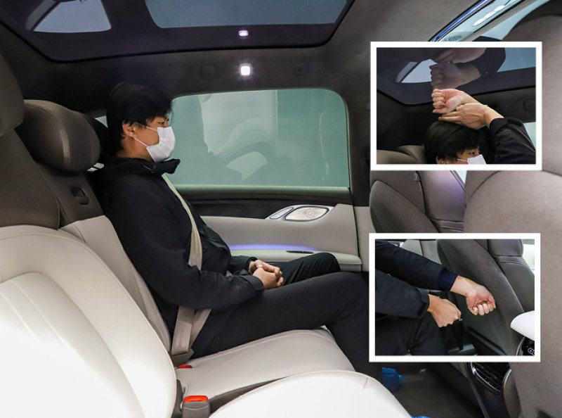 首先来看看“零重力模式”,通过“老板键”或者中控屏幕上的操作都能调节“零重力模式”,在这个模式下,后排右侧座椅的靠背、座垫和腿托都能实现大角度的电动调节,实现121度的零重力角座椅。而且121度也是真正的零重力角度,符合国际宇航机构128±7度的定义。实际体验下来,零重力座椅的感受十分不错,舒适性十分有保障,很适合让乘客在放松休闲的状态下看看书,玩玩手机。