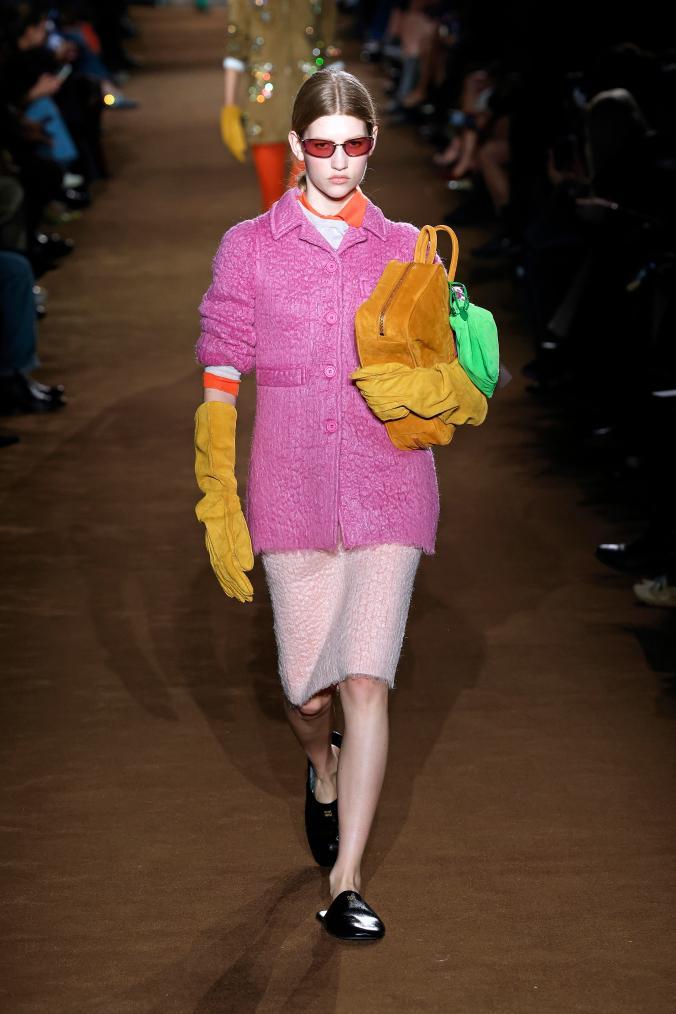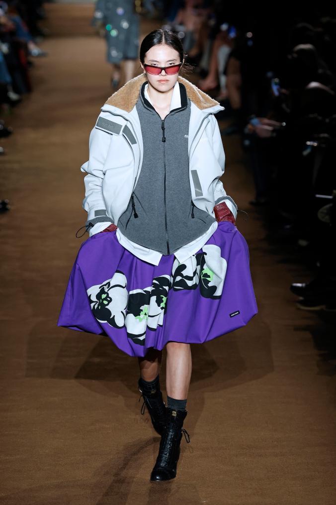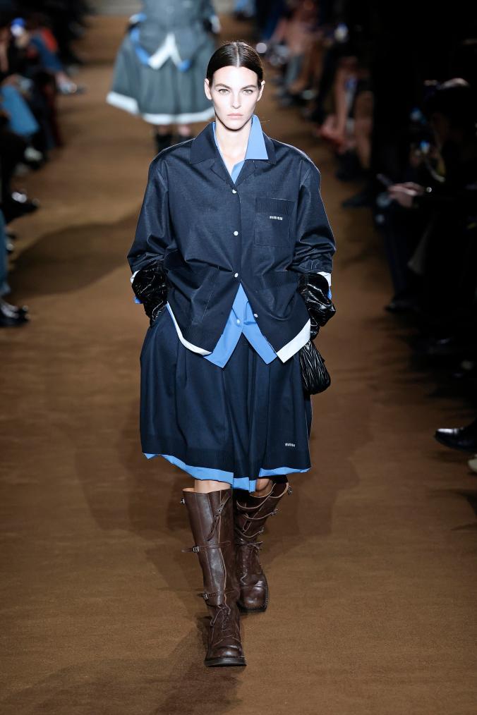 3月5日,模特在法国巴黎时装周上展示Miu Miu品牌2024/2025秋冬新品成衣。