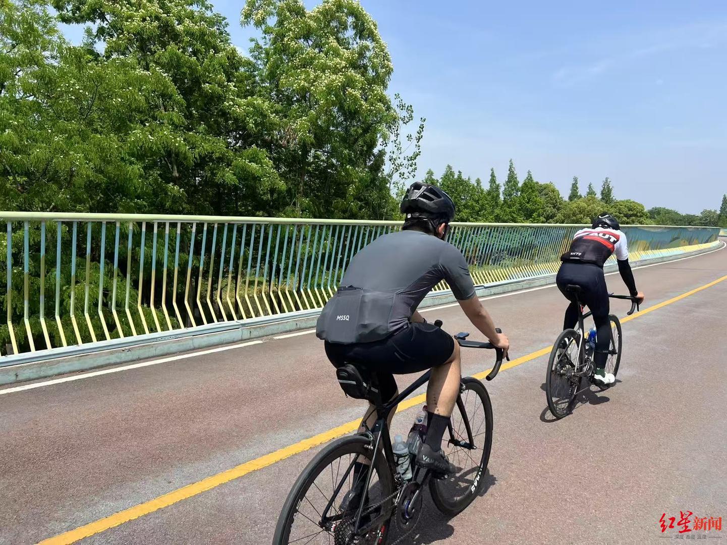 5月5日上午11时,在成都天府绿道,沿途有许多骑行爱好者的身影,其中不乏一些从重庆、上海等地慕名而来的游客。
