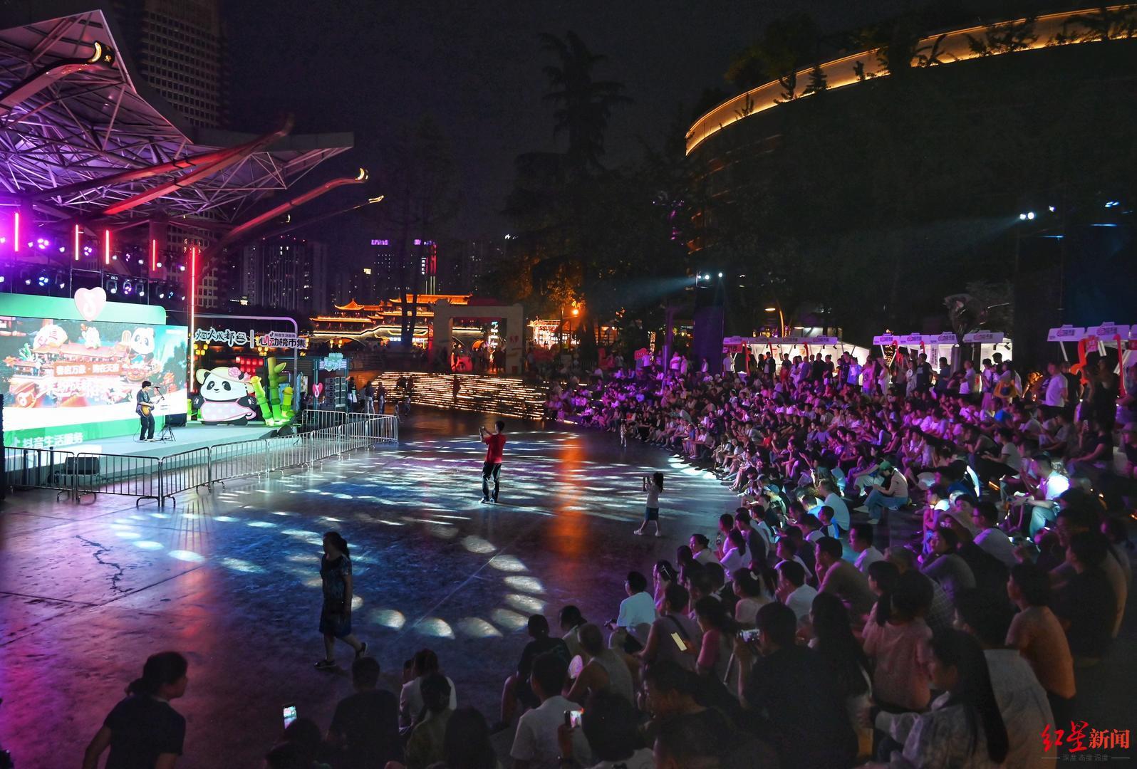 ▲5月3日,游客正在欣赏成都音乐广场举行的音乐会