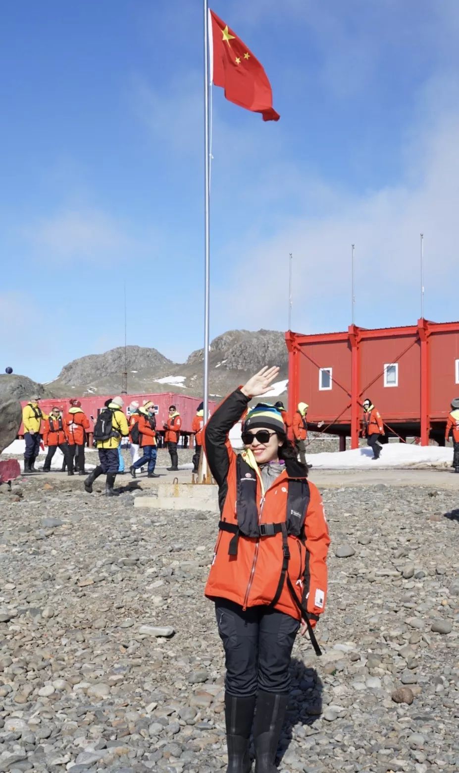 登陆长城站的时候,我们就疯狂拍照、留影,超有自豪感,超开心。很巧,我遇到了两位长城站的科考人员,他们看到国人也比较放松亲切,一般就会出来打招呼,很随和地跟我们合影。