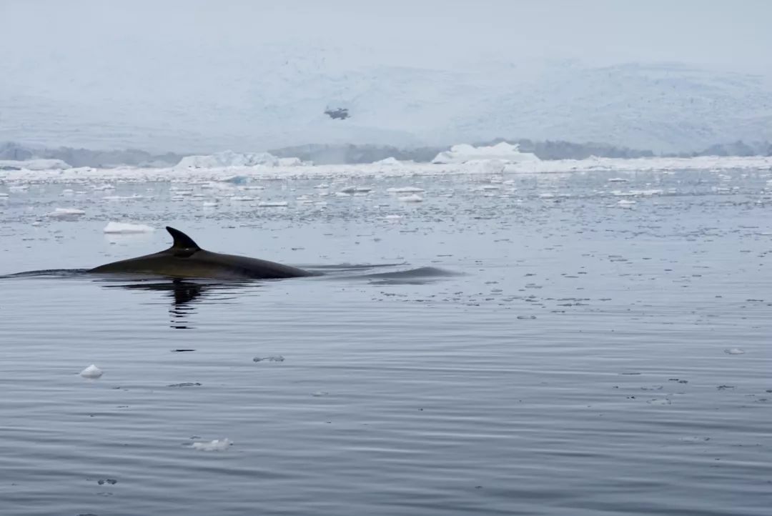 海上巡游时,坐在橡皮艇里边儿,速度快有风就比较冷。所以海上巡游的时候需要多穿一点,大概要穿到零下15度左右的程度。因为风非常大,帽子手套都要防风的,羽绒服外面套上船方发的冲锋衣。