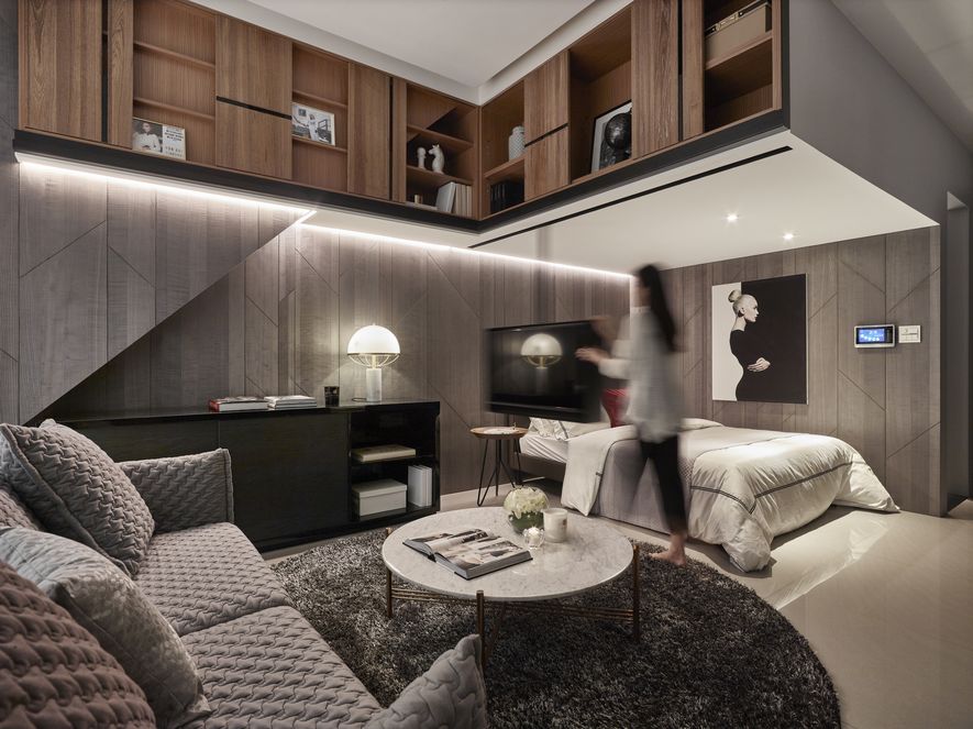 随着人在空间中行走,视觉角度的变化带出了空间的连续感,在这空间中没有任何一个视觉角度是重复的,这也让人在这空间之中,有了探索与游走的念头。 样板房的部分,客户一进门,出其不意看到的是未来这房子窗外的夜景,这是我们希望客户能更进一步体现未来心中的梦想,也是我们想要创造的话题性,透过智能膜的科技,这片夜景也能瞬间转换变成销售人员的销售道具,我们希望一再的创造惊奇! 主要项目信息 项目名称:橱窗里的房子 项目位置:中国台湾北部 空间类型:销售办公室、样板房 项目面积:32 坪 设计公司:9 Studio Design Group九號設計 主要建材:CNC板材、黑铁、黑色烤漆玻璃、镜面