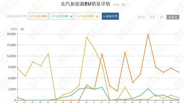 目前北汽新能源旗下有EU、EC和EX三个系列的车型,除了EU系列之外,EC和EX系列车型销量非常惨淡。