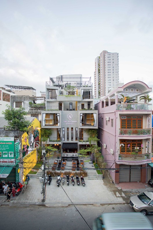建筑师供稿。岘港是越南的一座著名的海滨旅游城市。它不仅有美丽的海滩,还有美不胜收的汉江和山茶半岛。岘港也是通往世界遗产地会安途中的一个旅游目的地。因此近年来岘港由于旅游业而迅速发展起来,建设了许多度假村与酒店以服务来自世界各国的游客。但是旅舍( hostel )这种酒店类型在这四五年才受到注意并逐渐建设起来。这种类型的住宿在岘港并不流行,因此并没有足够多的旅舍来服务这类需求。