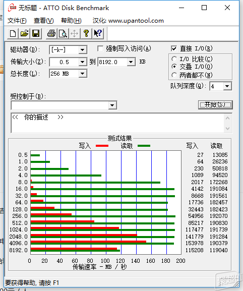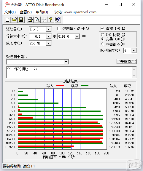 ATTO测速则有点惊喜,读写都超过了180MB/s