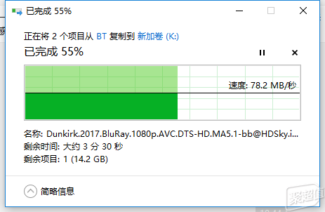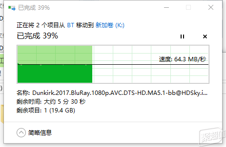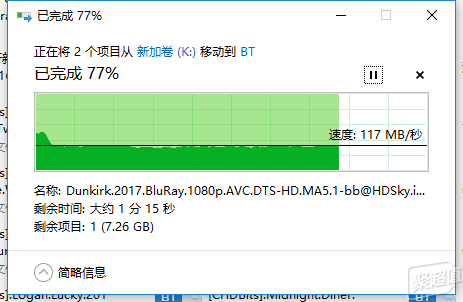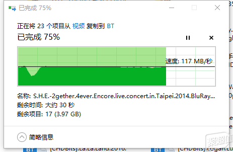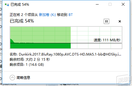 实际拷贝速度则受限于PC的内置硬盘限速,并没有太明显的提升。