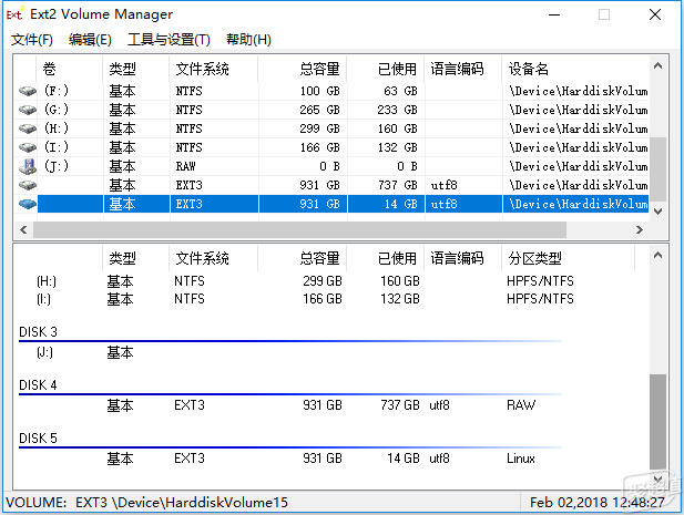 硬盘柜默认是PM模式,就是单独硬盘模式,由于2的两块硬盘采用的是EXT3格式,在Win上是无法识别的,我用了Ext2Fsd软件来识别读取。