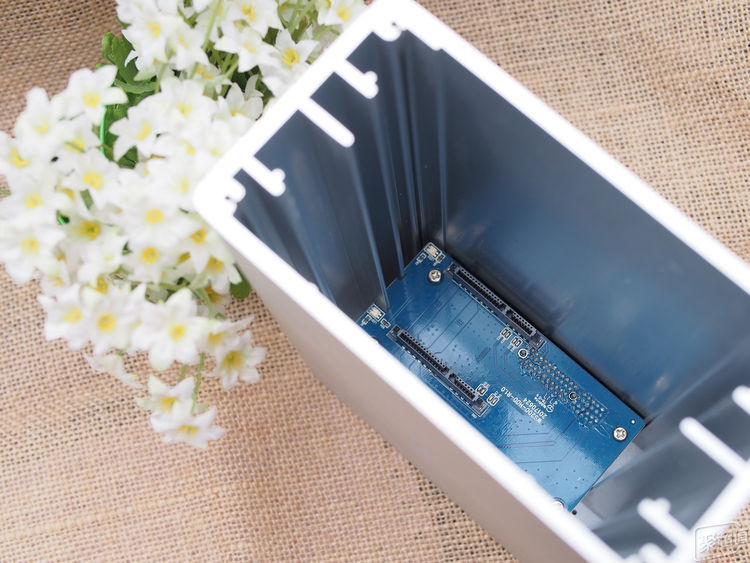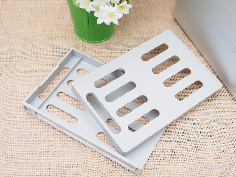 硬盘抽屉支架采用了ABS材质,镂空设计,兼顾了重量和散热。